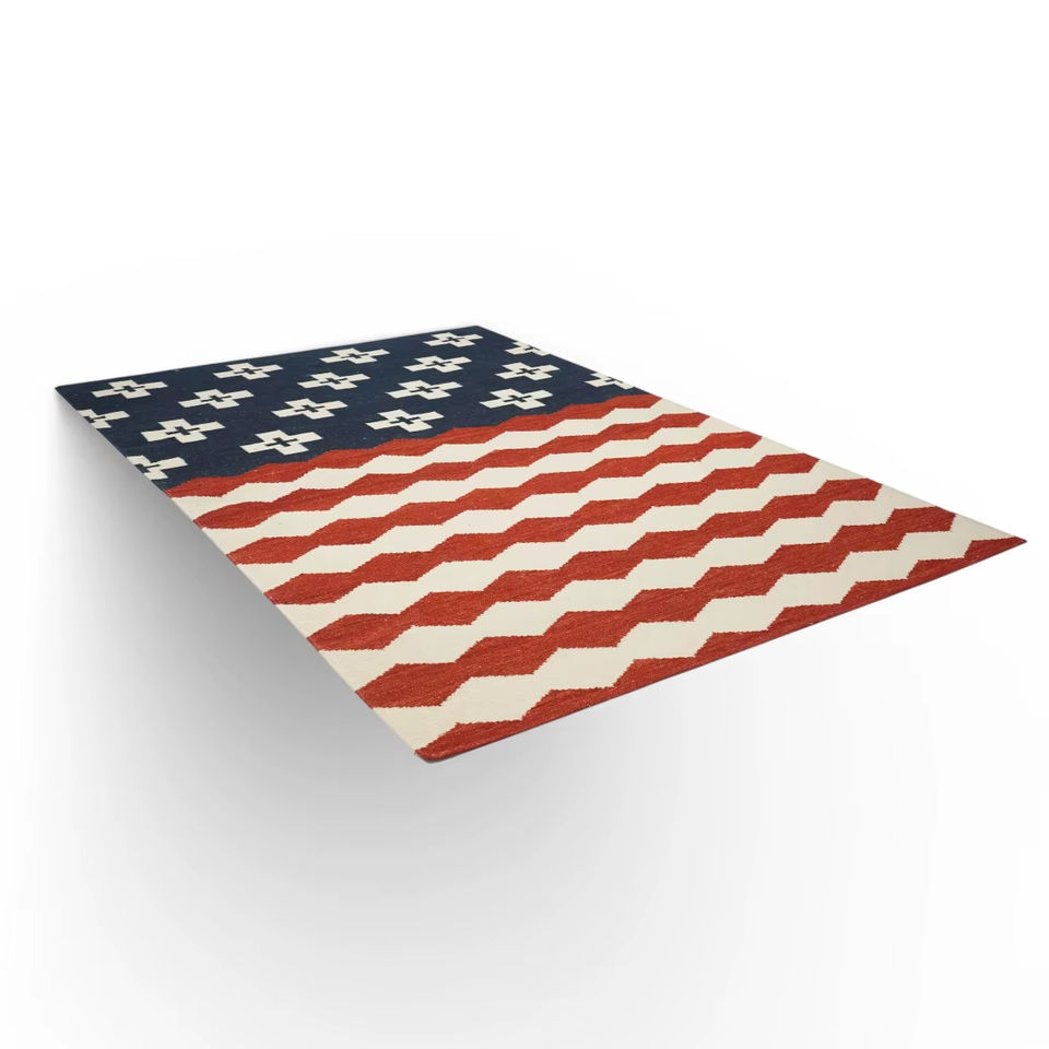 Alfombra Kilim de Lana Hecha a Mano, Diseño Abstracto Moderno, Antideslizante, Ecológica, Apta para Mascotas, de Pelo Corto