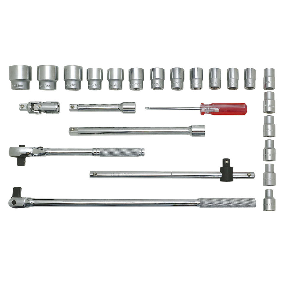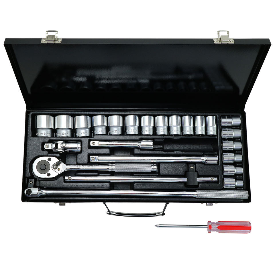 Juego de Llaves de Tubo de 25 Piezas de 8-32 mm, con Caja Metálica OEM, Accionamiento de 1/2'', de Alta Resistencia, con 1 Año de Garantía, Operado Manualmente