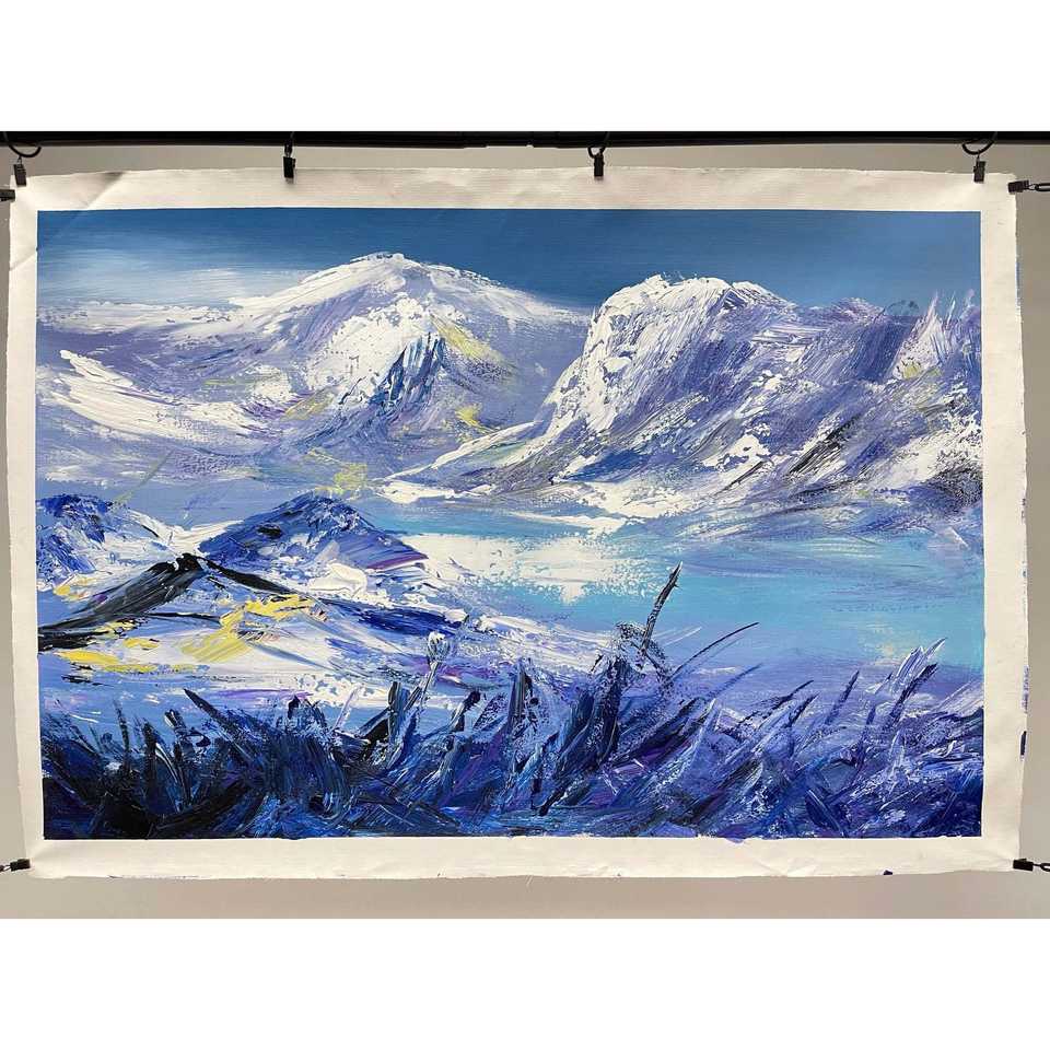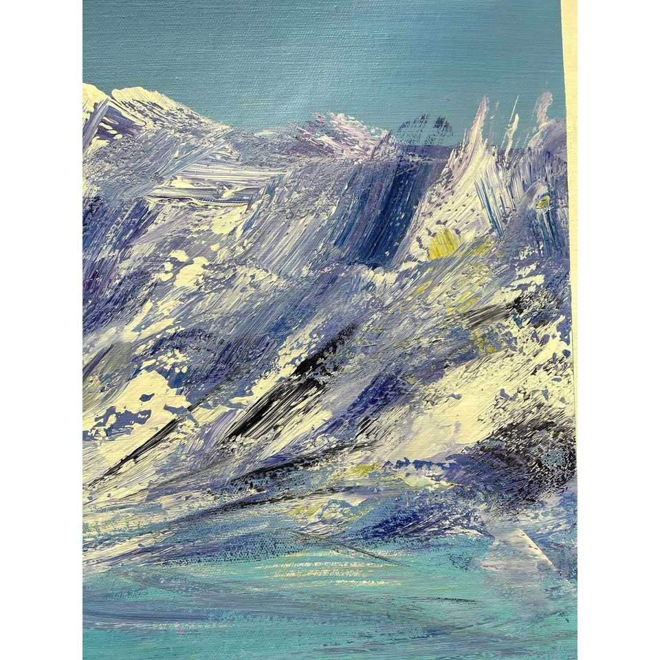 Pinturas al Óleo de Montañas Nevadas Pintadas a Mano 100% sobre Lienzo de 36x24 Pulgadas, Paisaje Abstracto Moderno con Textura 3D para Decoración del Hogar