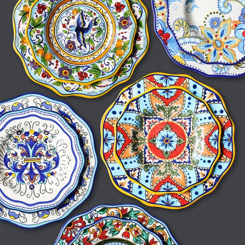 Plato de cerámica pintado a mano creativo Irregular bohemio plato de ensalada plato de cargador para el hogar