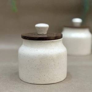 Tarro de Almacenamiento de Cerámica Pintado a Mano con Tapa de Madera, Recipiente Hermético para Alimentos, Organizador Decorativo de Cocina, Almacenamiento Elegante