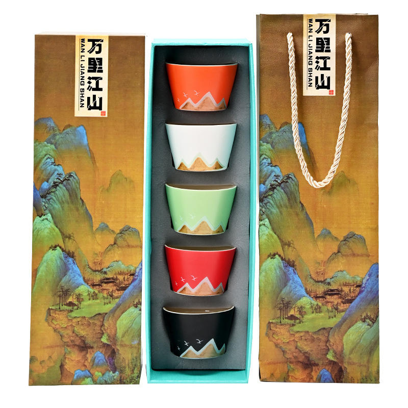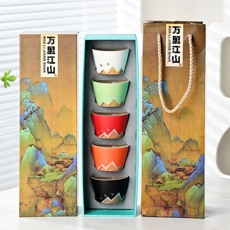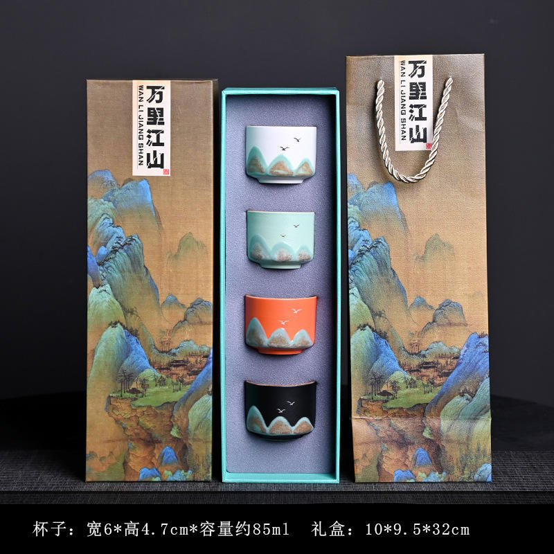 Juego de Tazas de Té de Cerámica Pintadas a Mano, Estilo Chino Tradicional con Patrón Floral, Origen Dehua, en Caja de Regalo