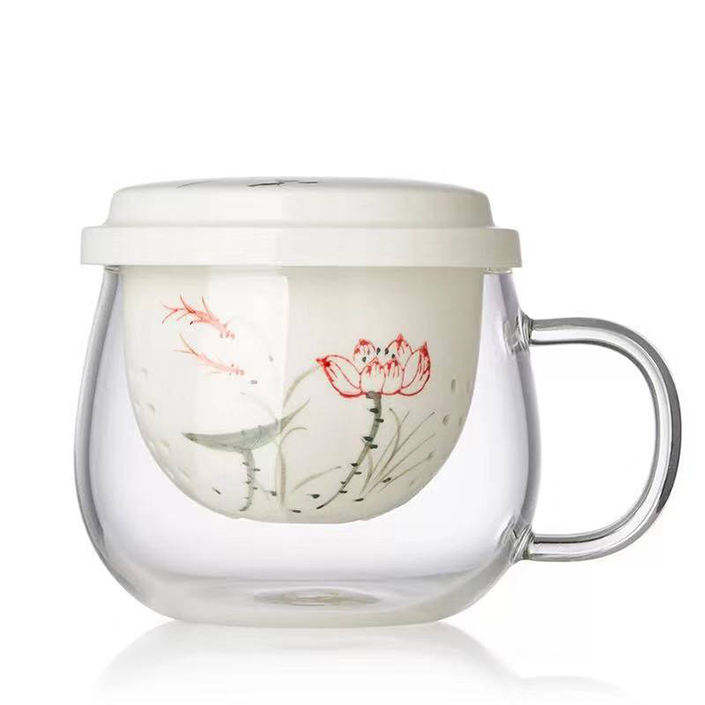 Taza de Té de Cerámica Pintada a Mano con Filtro Separador de Agua, Taza Resistente al Calor con Tapa para Beber Té, para Uso en Oficina y Hogar