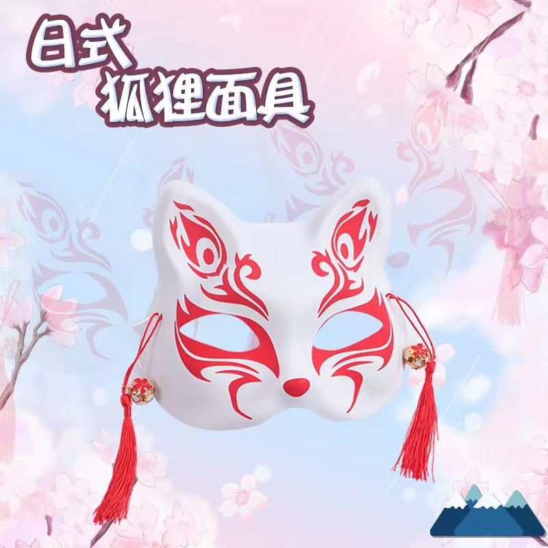 Máscara de gato zorro de media cara de estilo japonés pintada a mano de plástico para hombres y mujeres accesorios de Halloween transfronterizos Bola de fiesta