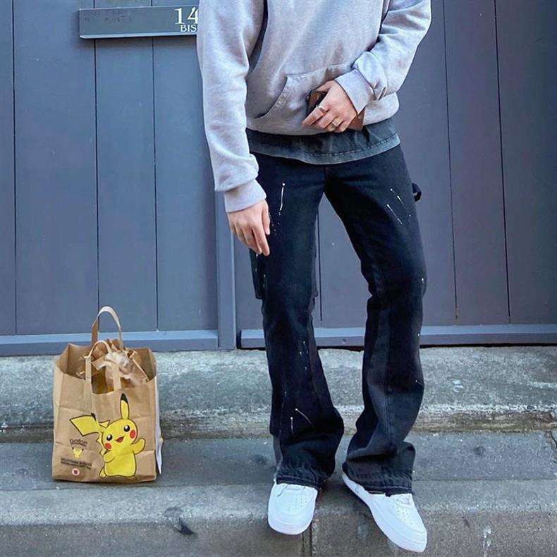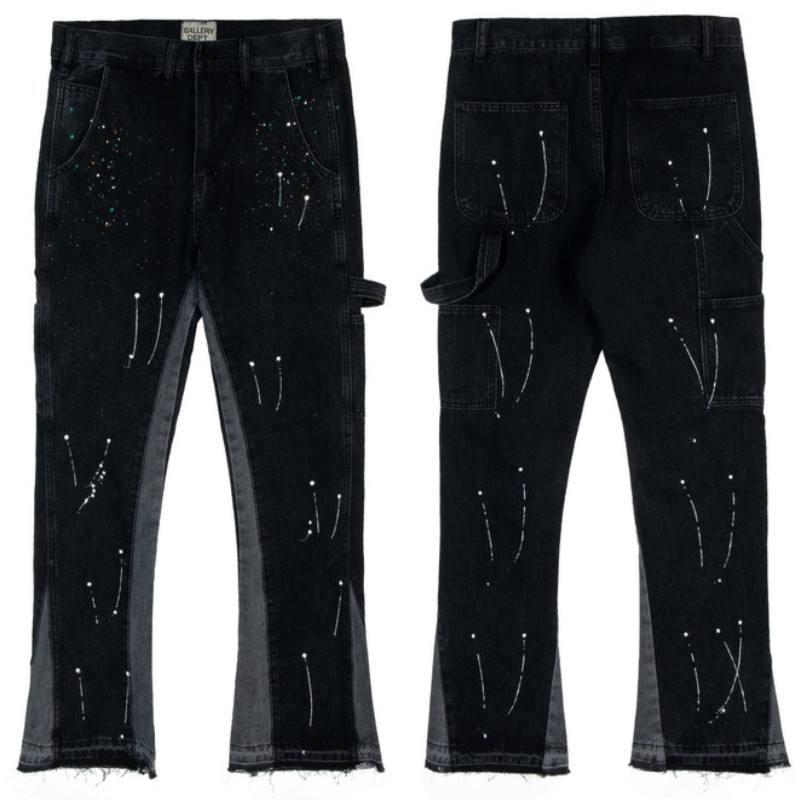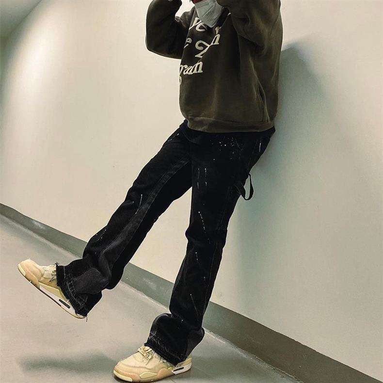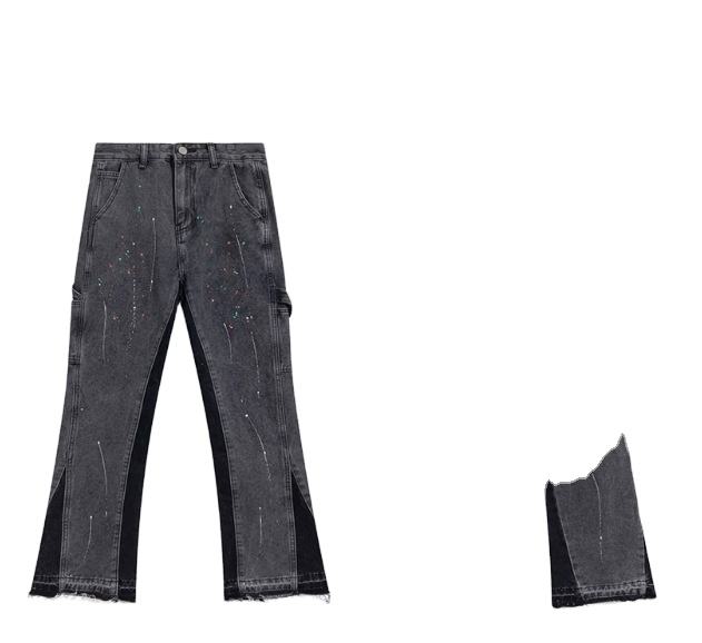 Vaqueros acampanados de hombre, 100% algodón, teñidos a mano, con microrasgaduras, resistentes a la decoloración, corte ajustado y largo, estilo americano High Street, con efecto desgastado.