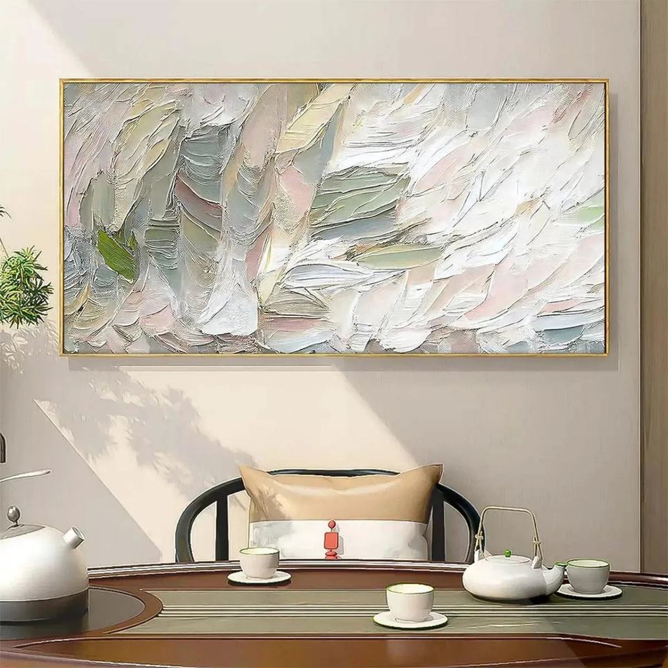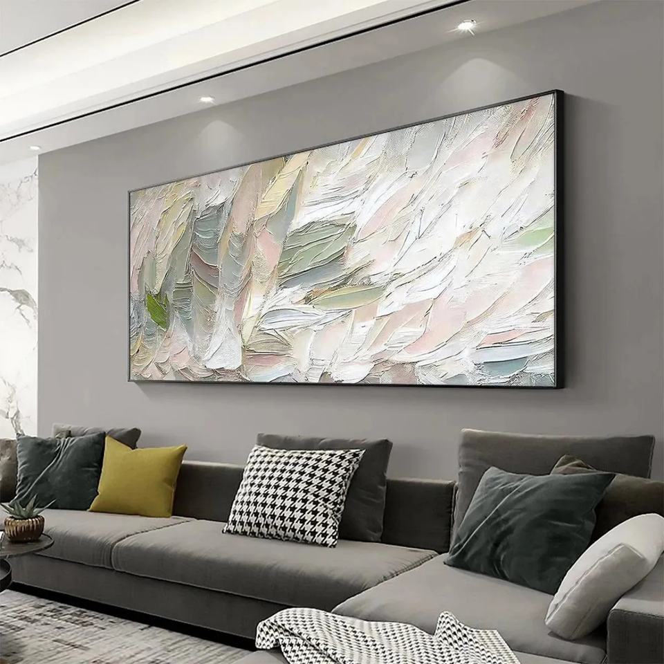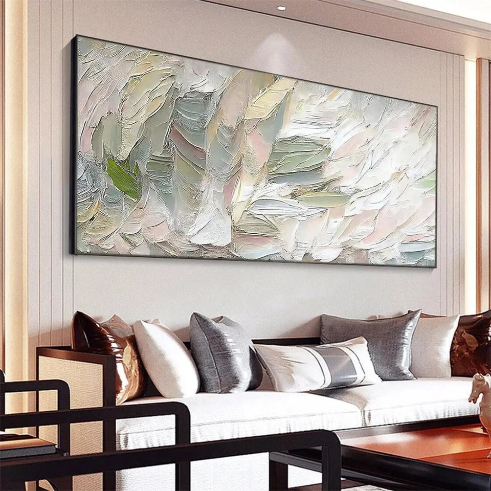 Pintura Abstracta Texturizada Rosa y Verde Pintada a Mano, Arte Original para Pared, Pintura al Óleo sobre Lienzo, Textura 3D, Arte Abstracto Minimalista