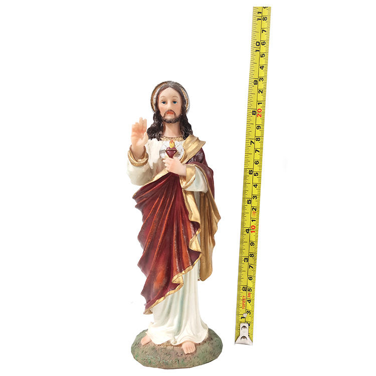 Nombre:Pintado a mano Resina Sagrado Corazón de Jesús Figura