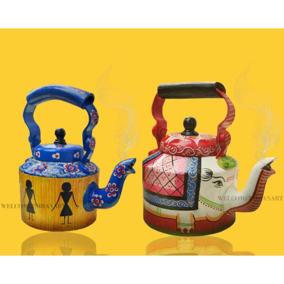 Tienda de artesanías indias, tetera de aluminio hecha a mano pintada a mano, modelo 1, olla elegante para amantes del té
