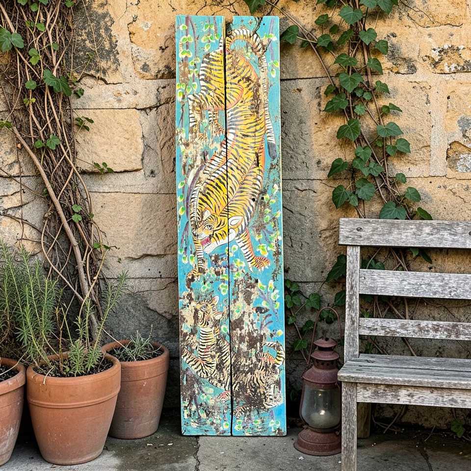 Panel Decorativo Pintado a Mano con Diseño de Tigre, Estilo Clásico, Decoración para el Hogar, Pintura Animal Impresa