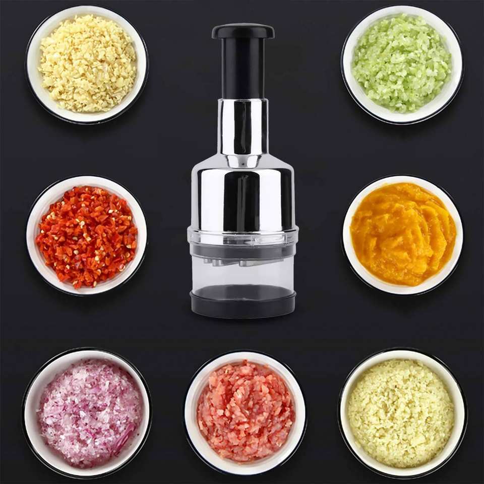 Picadora de Ajo Manual, Cortador de Cebolla Multifuncional, Picador de Verduras, Procesador de Alimentos Manual, Triturador de Ajo