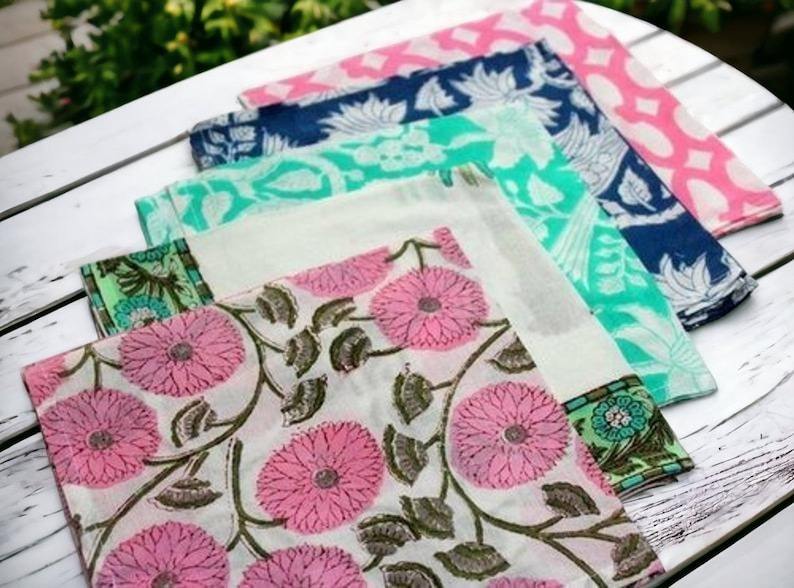 Juego de servilletas de algodón impresas a mano patrón bordado para el hogar cocina comedor vacaciones mantel cubierta facial para Cena