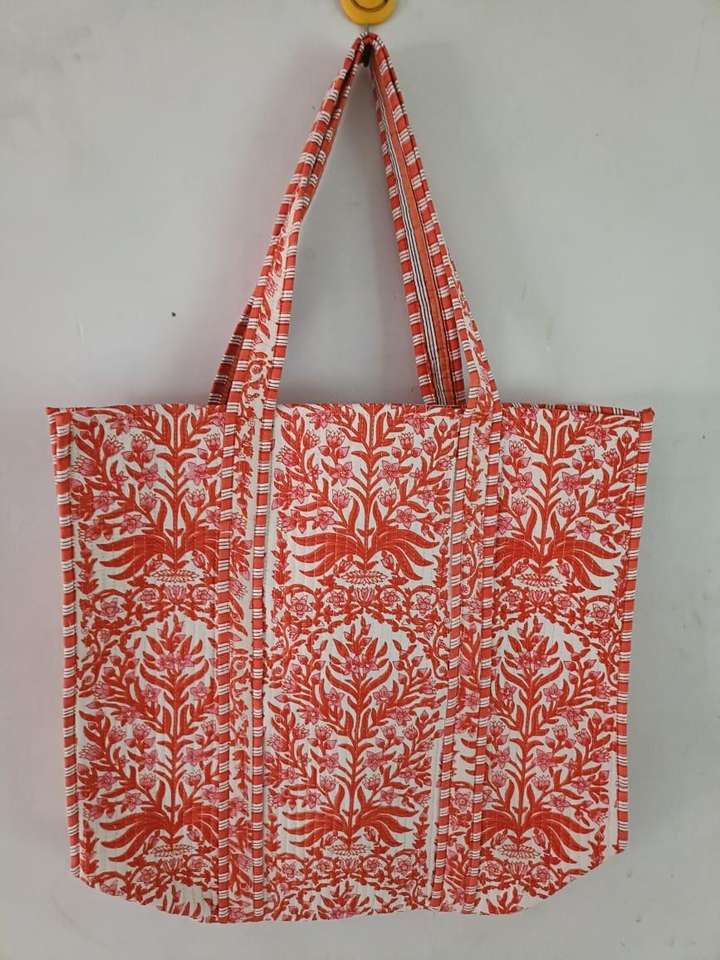 Bolsos de Hombro Estampados a Mano para Uso Diario, Bolsos Tote de Algodón Puro Acolchados a Mano con Bordado Abierto - 14x16 Pulgadas para Uso Diario y Viajes