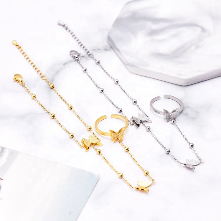 Anillo de mano para mujer, pulsera con arnés, cadena con colgante de concha de mariposa, brazalete de dedo esclavo