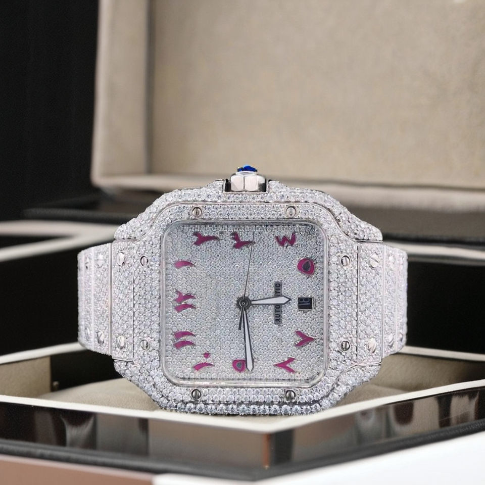 Reloj Moissanite con números arábigos, reloj personalizado hecho a mano de proveedor indio confiable