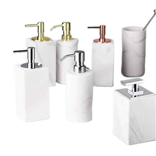 Dispensador de jabón de manos, botella de líquido montada en la pared de mármol y acero inoxidable para cocina, baño y accesorios de cocina