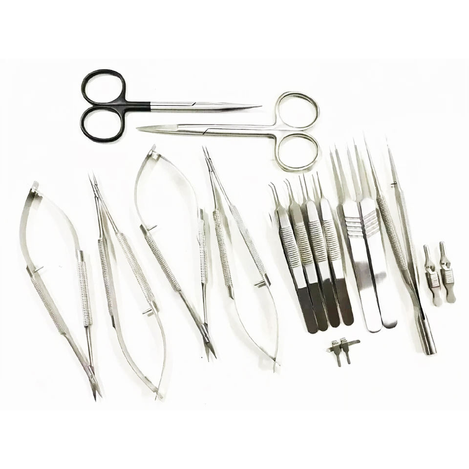 Juego básico de 17 piezas de microinstrumentos quirúrgicos de acero inoxidable para cirugía de mano