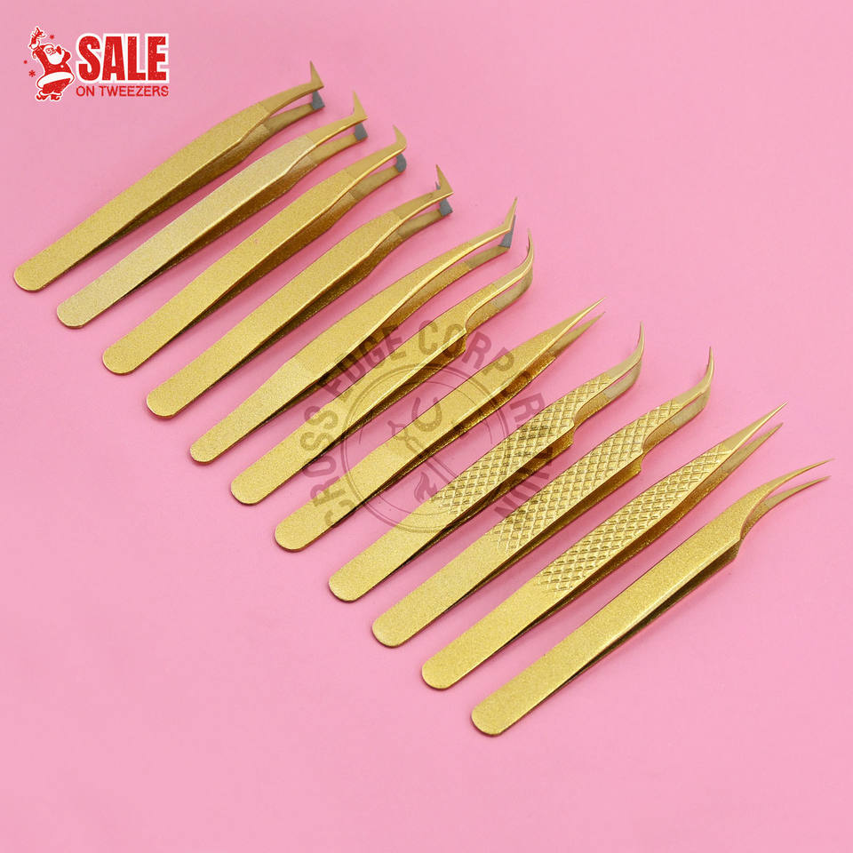 Pinzas para Extensiones de Pestañas Más Vendidas, Punta Delgada de 90 Grados