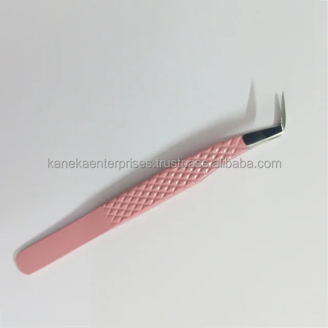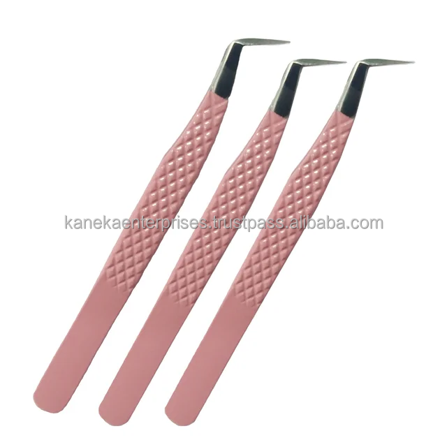 Pinzas para pestañas con agarre de diamante Rosa bebé de acero inoxidable probadas a mano, pinzas para pestañas con volumen de ángulo de 90 grados
