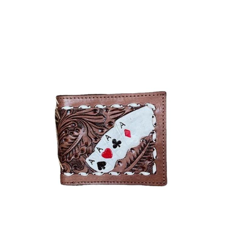 Cartera de Cuero Vacuno Estilo Occidental Hecha a Mano para Hombre, Corta, con Bloqueo RFID, Diseño de Tarjetas Ace, Estilo de Moda Hecho a Mano al por Mayor
