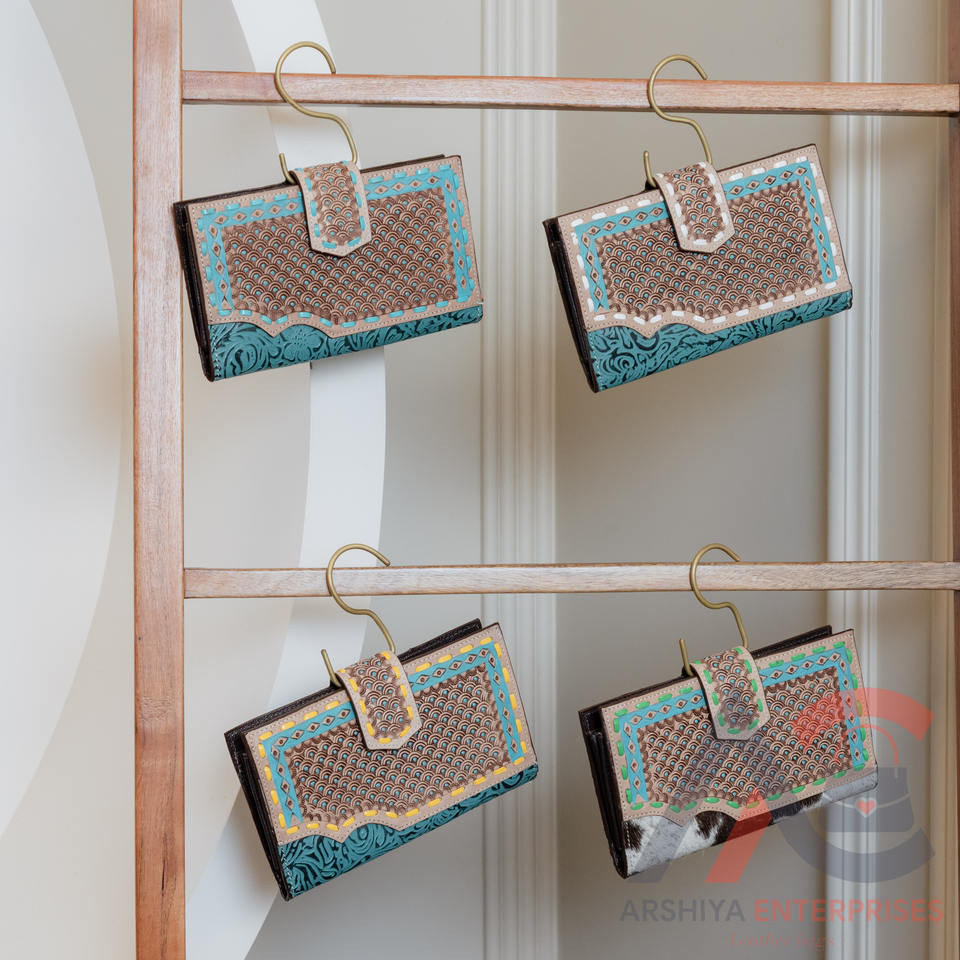 Product name:Hair On Tooled Leather Bi-fold Wallet