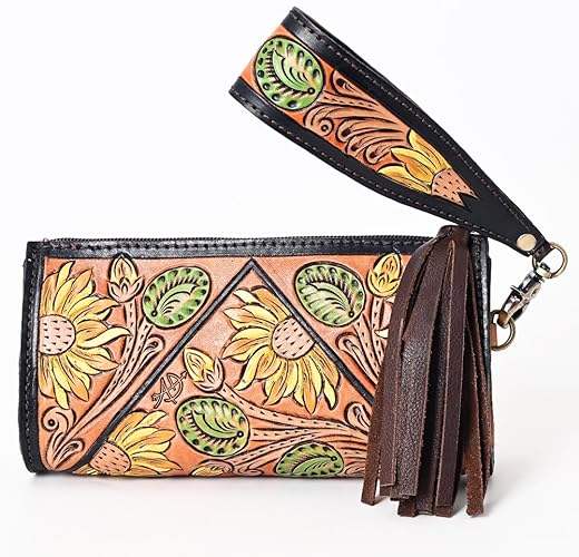 Cartera de cuero tallada a mano, funda de teléfono de embrague, carteras de cuero de vaca con estilo, Cartera de Color turquesa para mujer