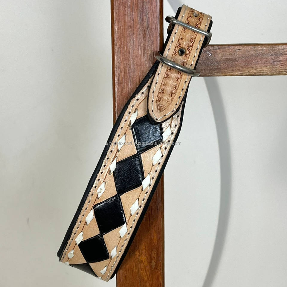 Nombre del producto:Conjunto de correa de perro de cuero a cuadros a mano