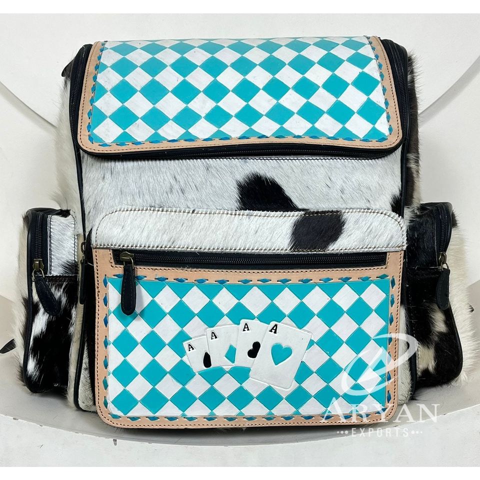 Product Name:Hand Tooled Checkered Leather Diaper backpack Backpack