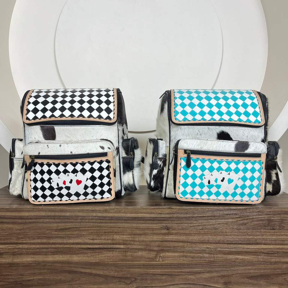 Product name:Hand Tooled Checkered Leather Diaper backpack Backpack