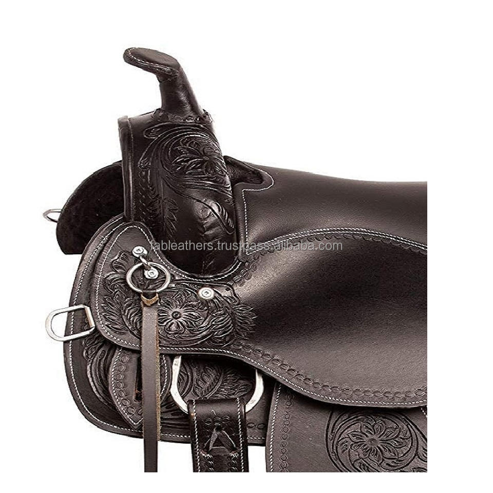 Caballo de cuero de diseñador con herramientas manuales Placer ecuestre Montar cuero Western Horse Saddle Cómodo cuero Horse Saddle