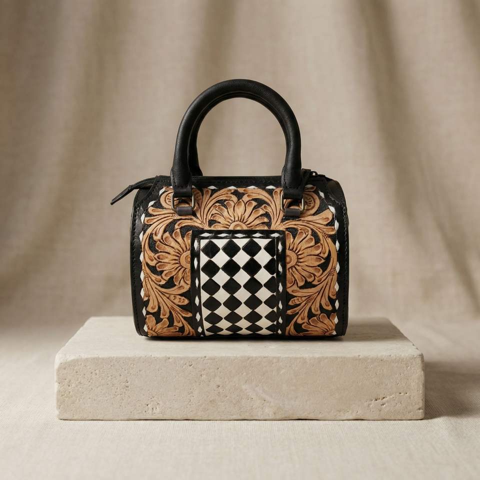 Product name:Tooled Leather Speedy Mini Duffle Bag