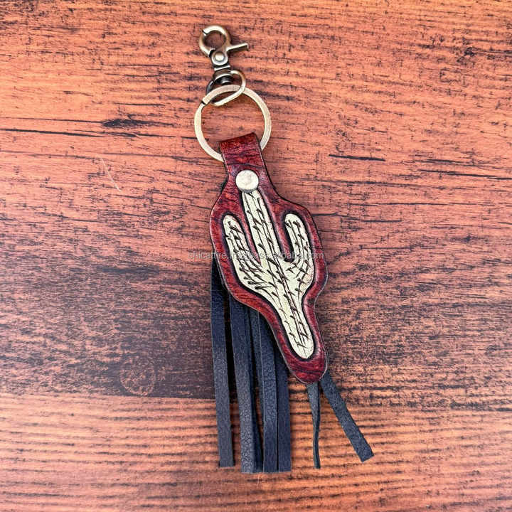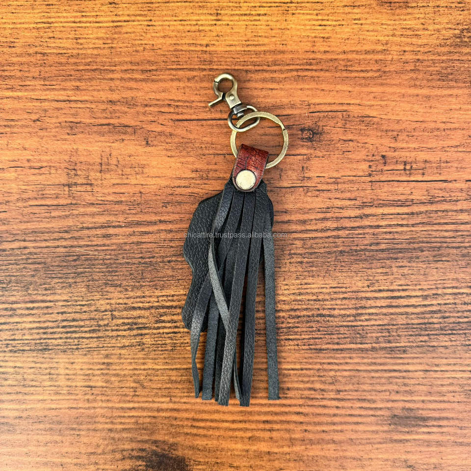 Nombre del producto:Mano Tooled Cuero Fringe Key Fob