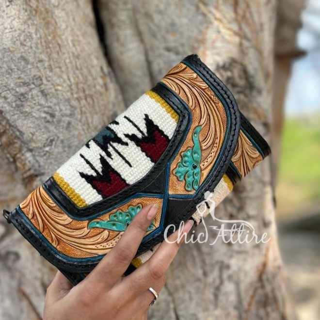 Product name:Hand Tooled Saddle Blanket Crossbody Wallet