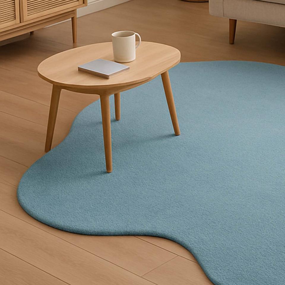 Alfombra de Lana 100% Tejida a Mano con Diseño de Nubes | Alfombra de lana azul sólida hecha a mano | Alfombra Modernista para Estudio con Borde Ondulado Creativo