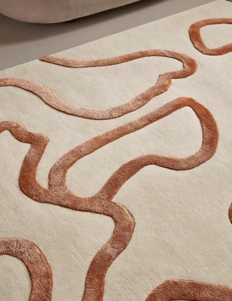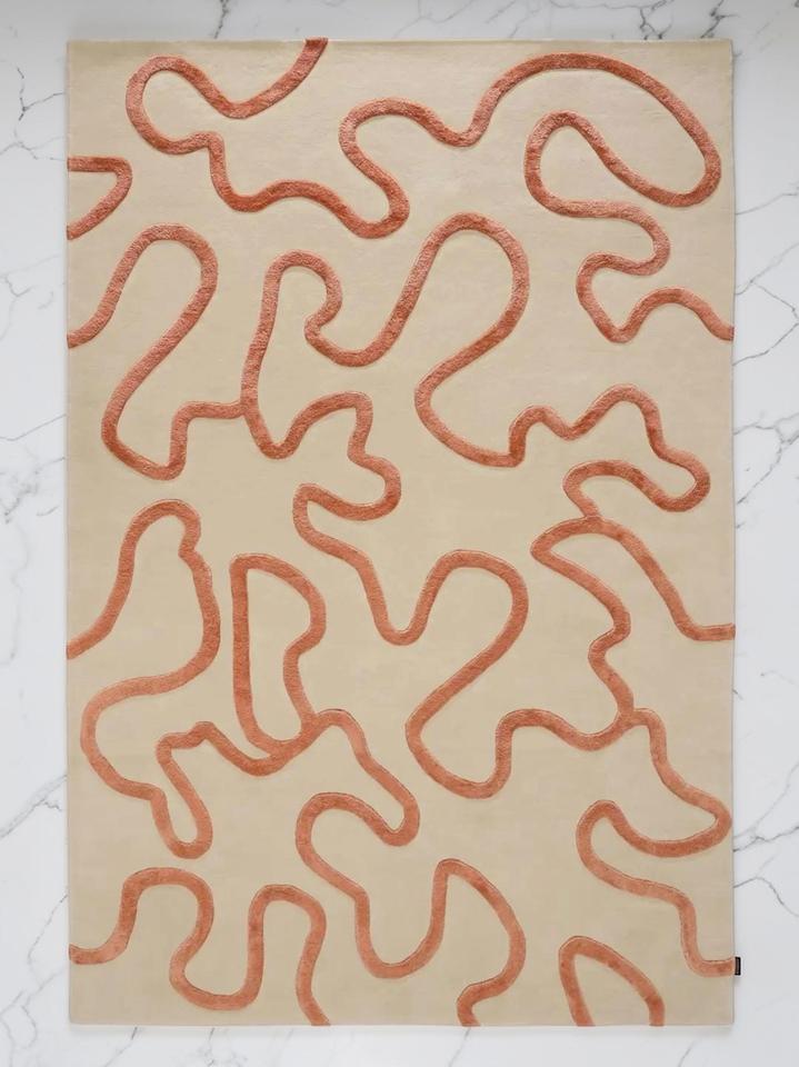 Alfombra de Lana Abstracta de Pelo Corto Hecha a Mano, Apta para Mascotas, Antideslizante, Ecológica, Antibacteriana, Diseño Moderno, Beige Neutro, Látex Fino