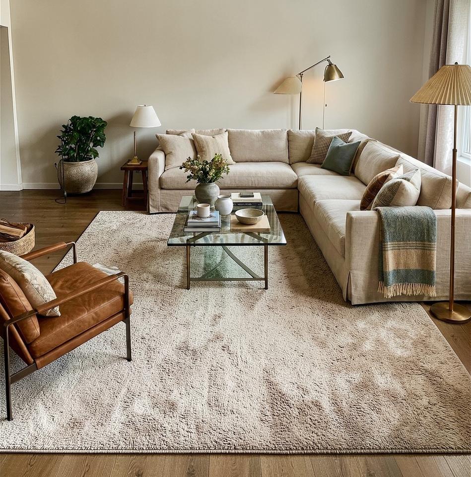 Alfombra de Lana Abstracta de Pelo Corto Hecha a Mano, Apta para Mascotas, Antideslizante, Ecológica, Antibacteriana, Diseño Moderno, Beige Neutro, Barra Delgada