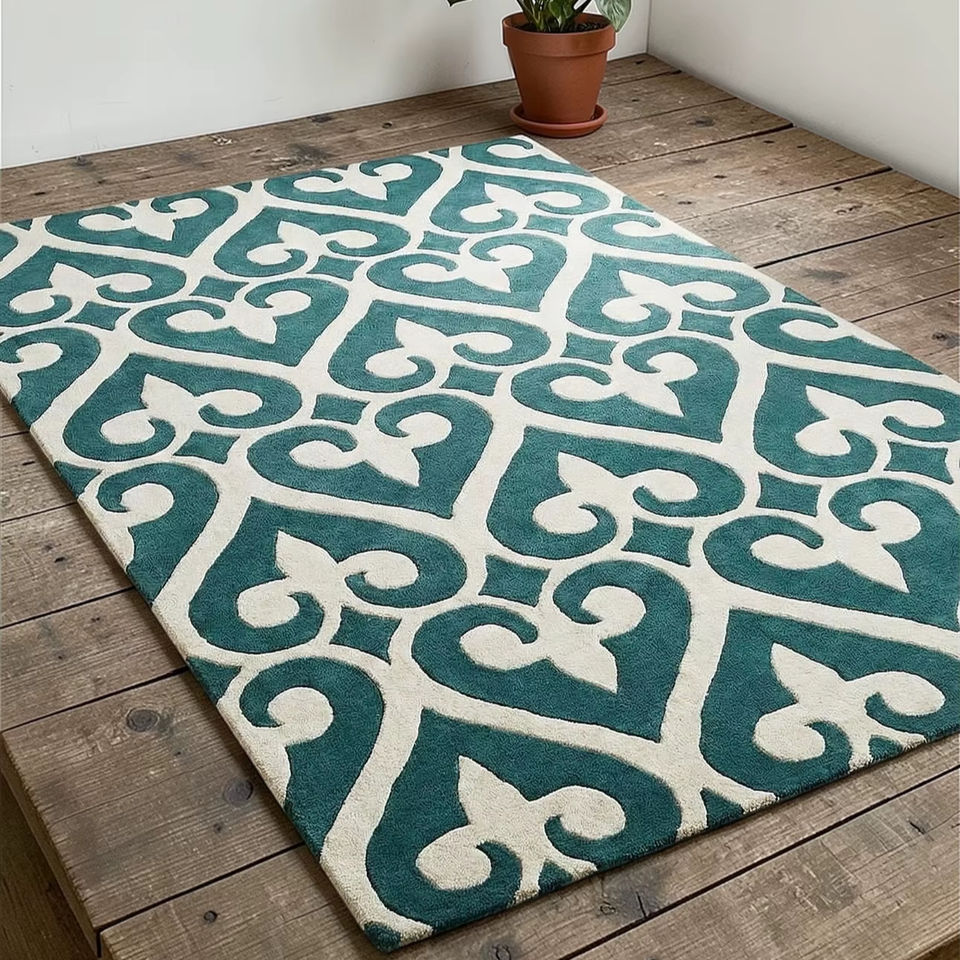 Alfombra de Lana Abstracta de Pelo Corto Hecha a Mano, Apta para Mascotas, Antideslizante, Ecológica, Antibacteriana, Diseño Moderno, Beige Neutro, Látex Fino