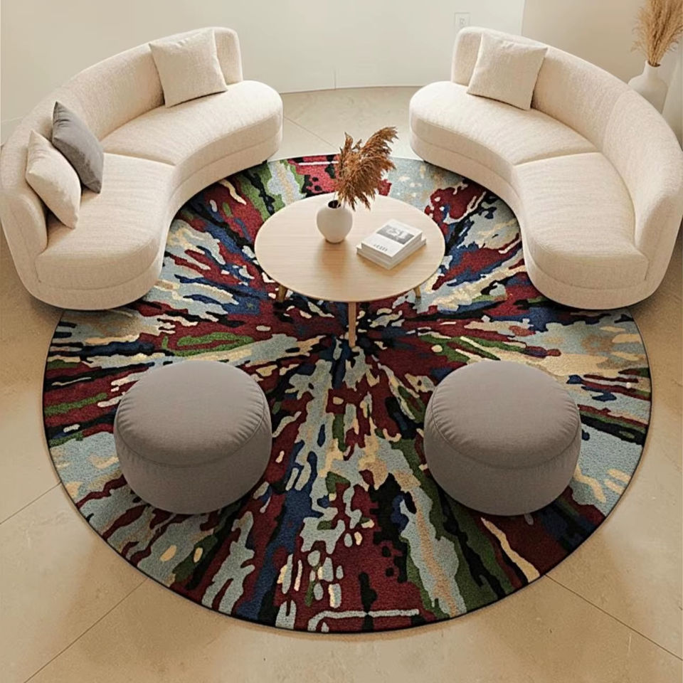 Alfombra de Lana Abstracta de Pelo Corto Hecha a Mano, Apta para Mascotas, Antideslizante, Ecológica, Antibacteriana, Moderna, Beige Neutro, Látex Fino