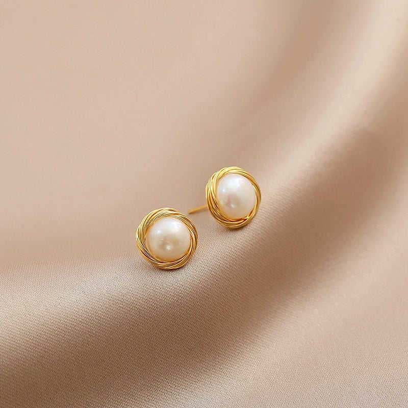 Pendientes de Perlas Naturales Enrolladas a Mano