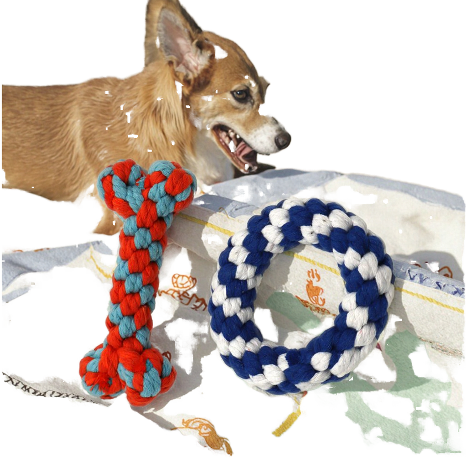 Juguete de Cuerda de Algodón Tejido a Mano para Cachorros, Anillo Mordedor Duradero Trenzado para Masticar y Jugar en Interiores y Exteriores