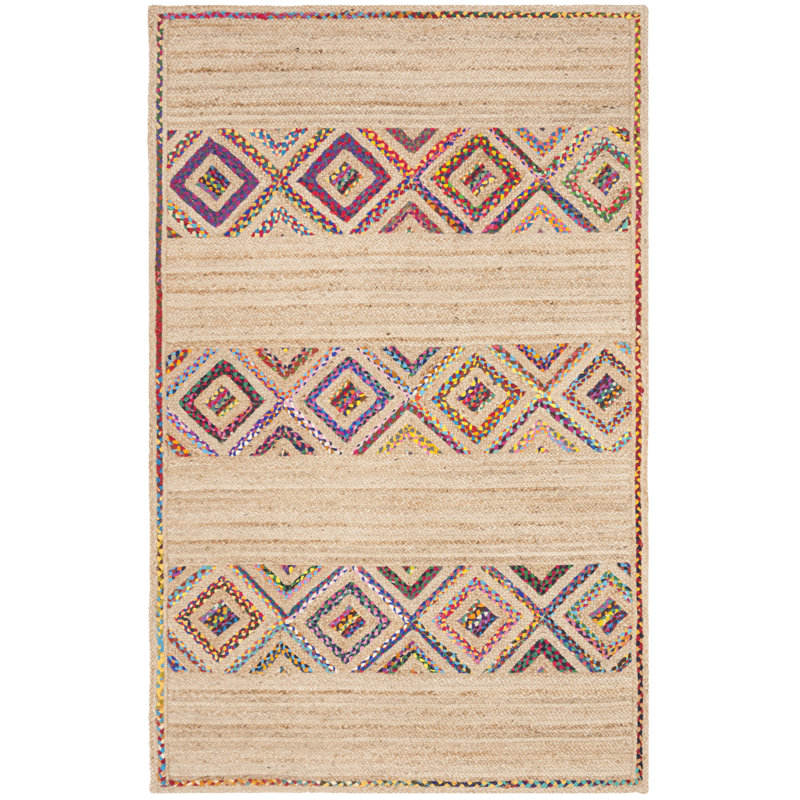 Alfombra geométrica tejida a mano de yute/algodón Natural con conjunto único