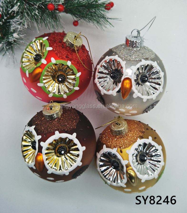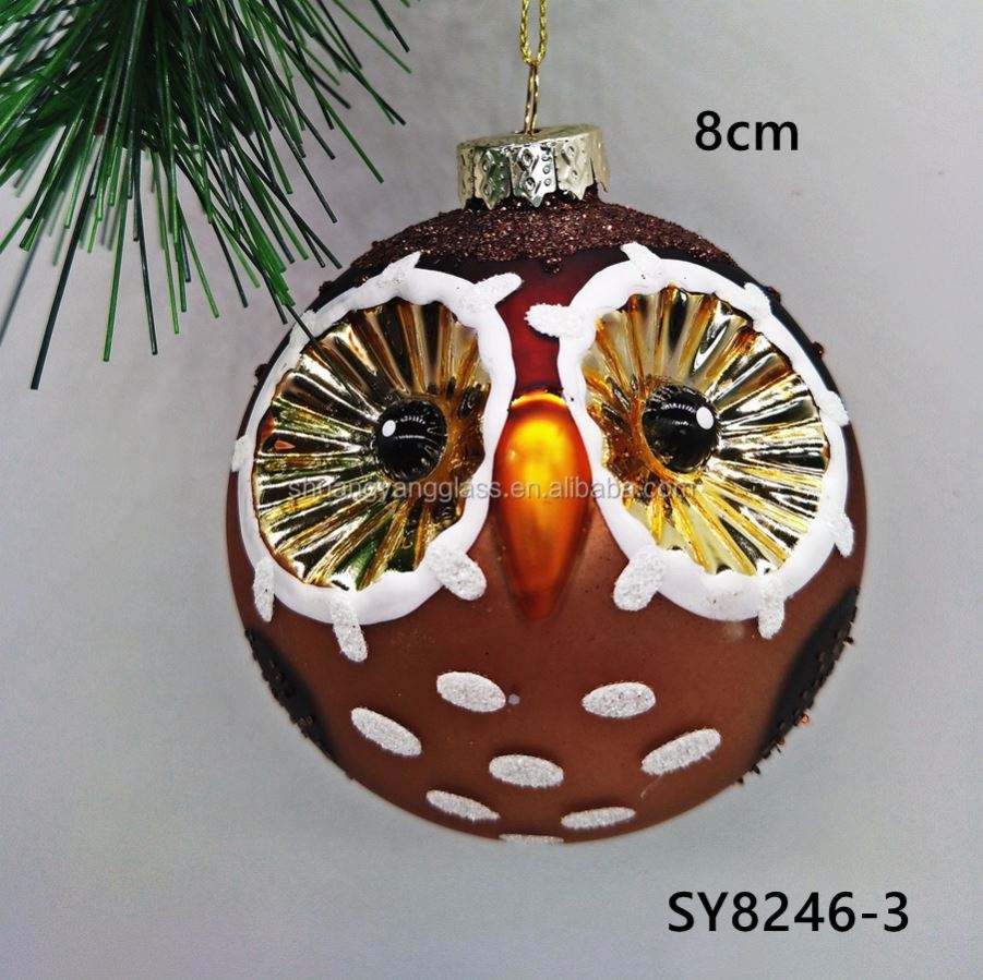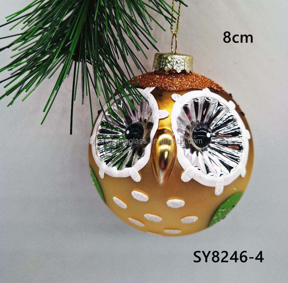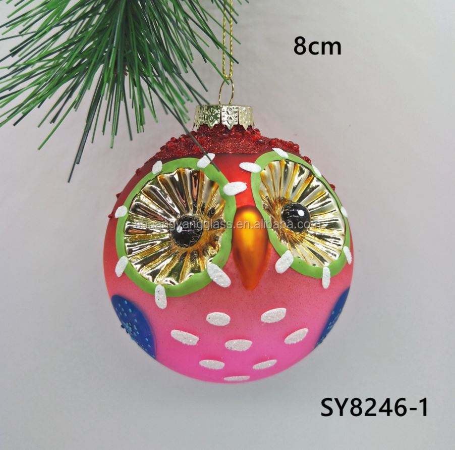 Adorno Colgante de Cristal de 8cm para Interiores, con Diseño de Bola de Búho, Hecho a Mano, Pintado a Mano, Color Personalizado, para Navidad