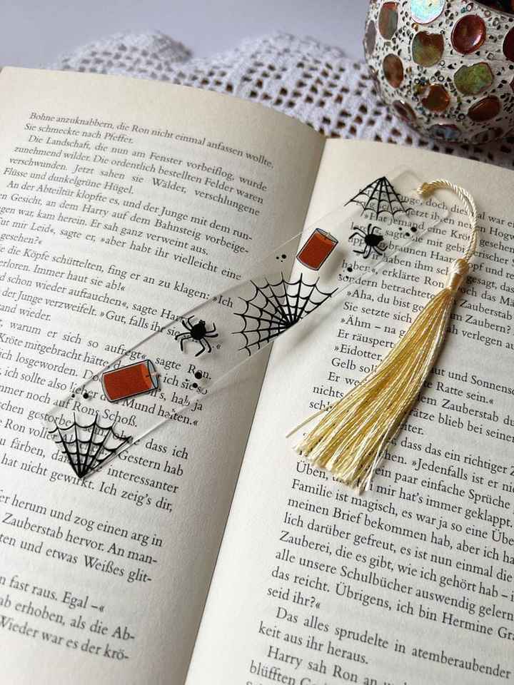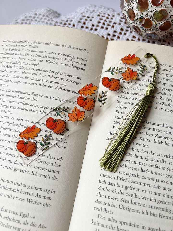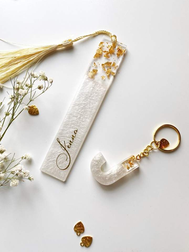 Marcapáginas Decorativo Art Deco con Flecos Redondos de Resina y Hojas de Oro Secas Repujadas a Mano