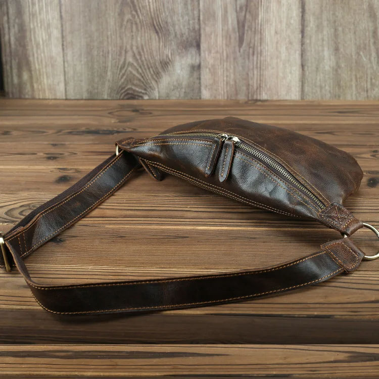 Patas de cuero de Caballo Loco viejas hechas a mano, bolsillos de cuero retro, bolsos de hombre casuales, bolso de hombro de cuero, bolso de marea de motocicleta