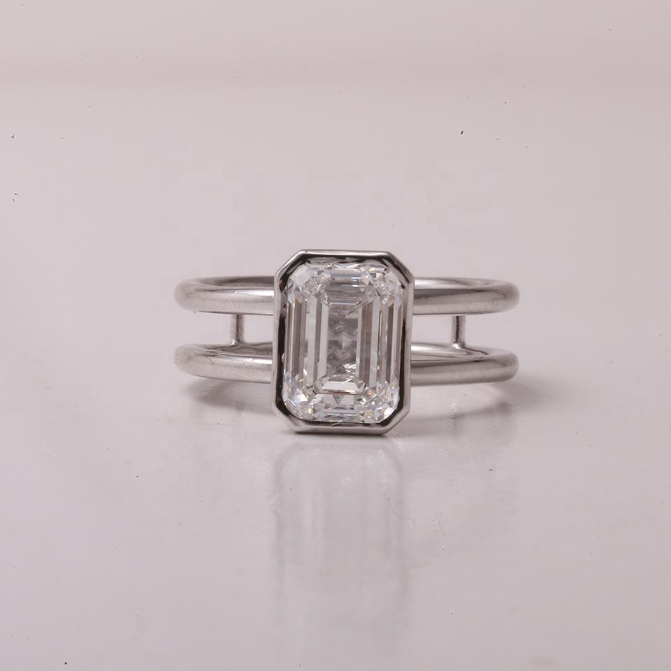 Lujoso anillo solitario de oro blanco de 14kt hecho a mano con diamante de corte esmeralda cultivado en laboratorio certificado IGI para boda de mujer