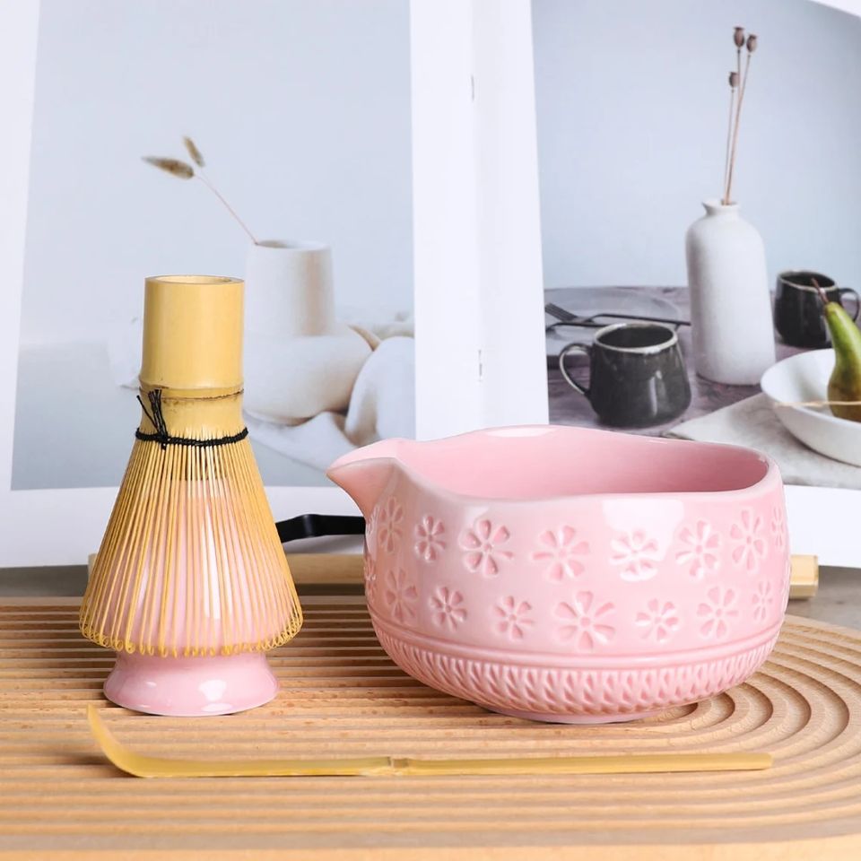Color:Pink Cherry Blossom Matcha juego de té o como costumbre