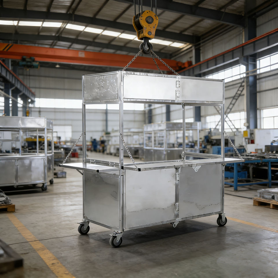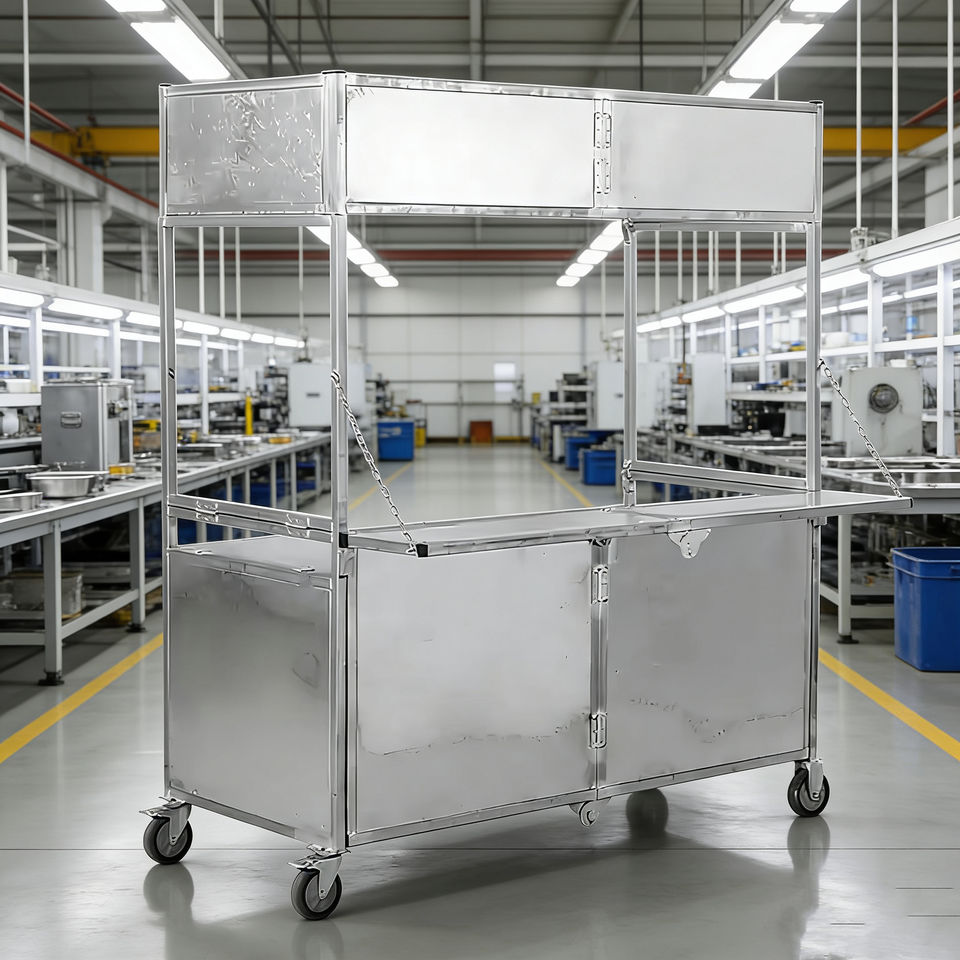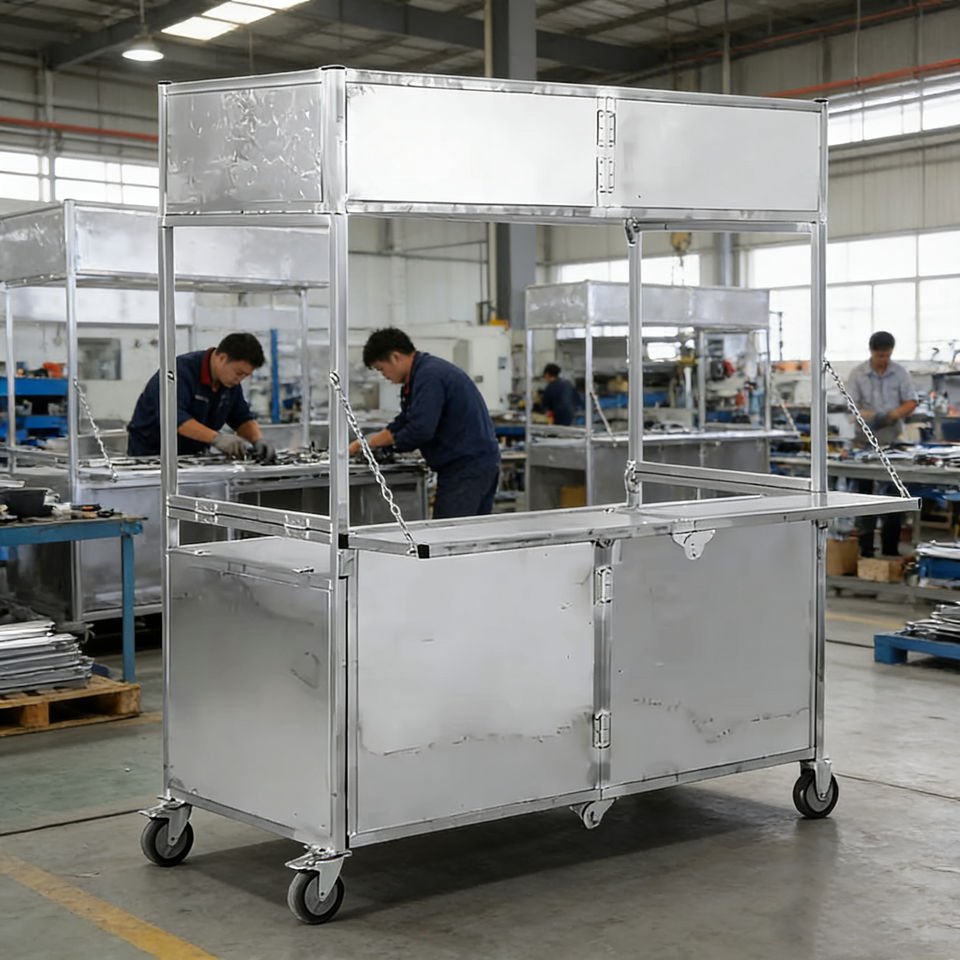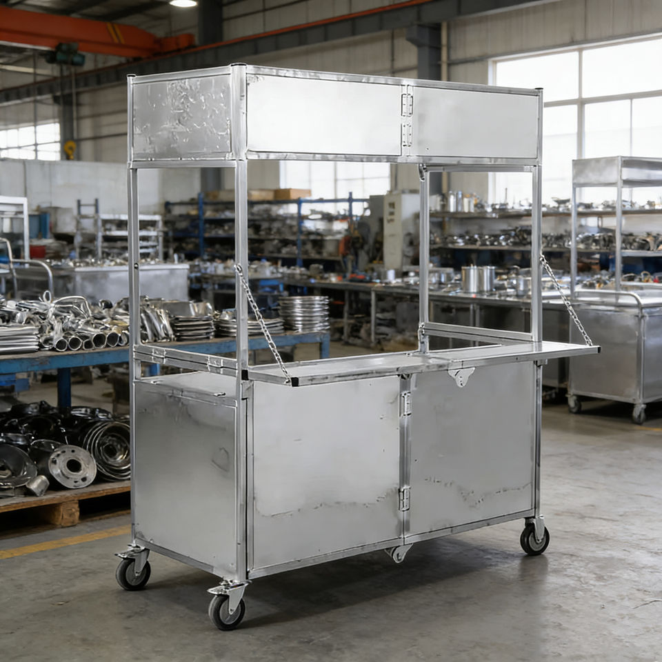Carrito de Comida Plegable de Acero Inoxidable con 4 Ruedas para Venta Ambulante de Hot Dogs, Helados, Dulces y Café