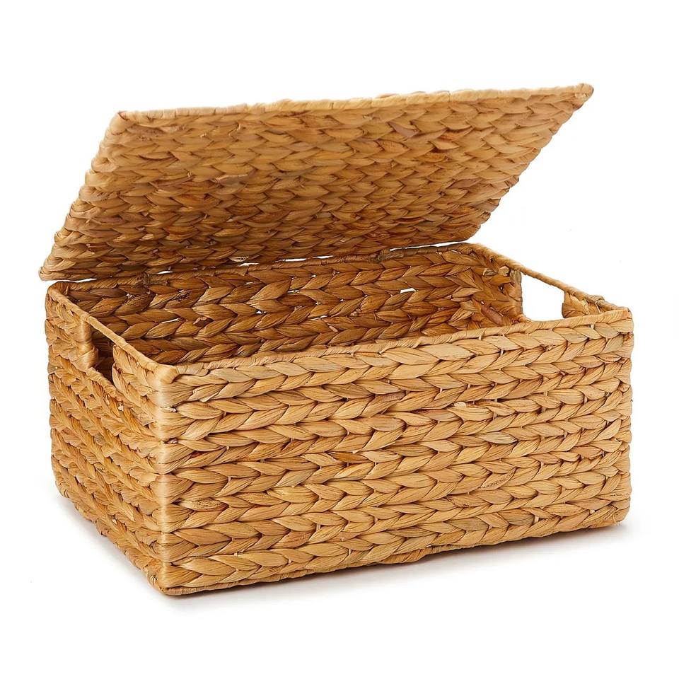 Caja de almacenamiento de paja tejida a mano, precio más bajo, cajas de almacenamiento ecológicas, contenedores de jacinto de agua