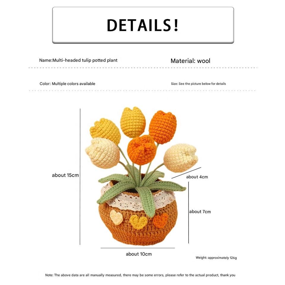 Adorno en maceta de tulipán naranja degradado de 6 cabezas tejido a mano, maceta grande tejida con hilo, flor artificial, decoración de escritorio para el hogar, bonsái