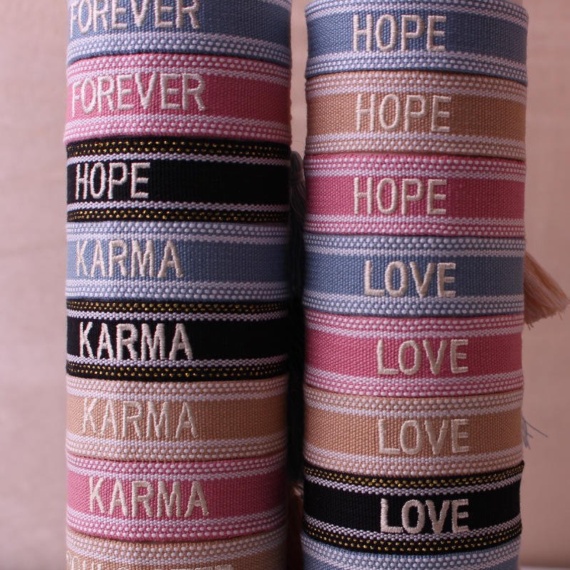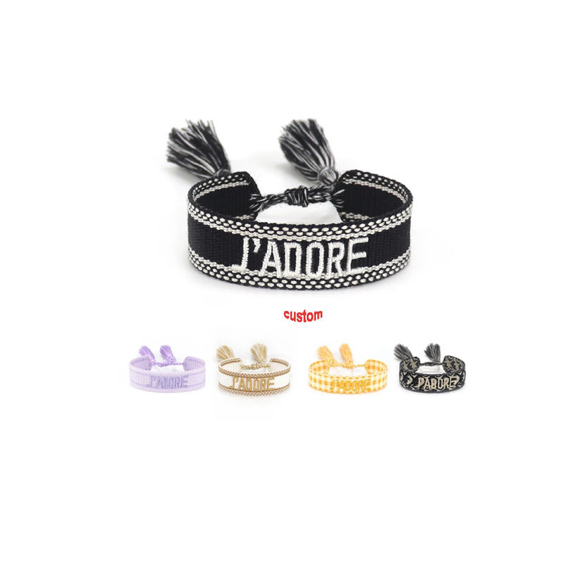 Pulsera Personalizada Tejida a Mano, Letras Bordadas Coloridas Personalizadas, Pulsera Trenzada Ajustable Hecha a Mano Estilo Bohemio