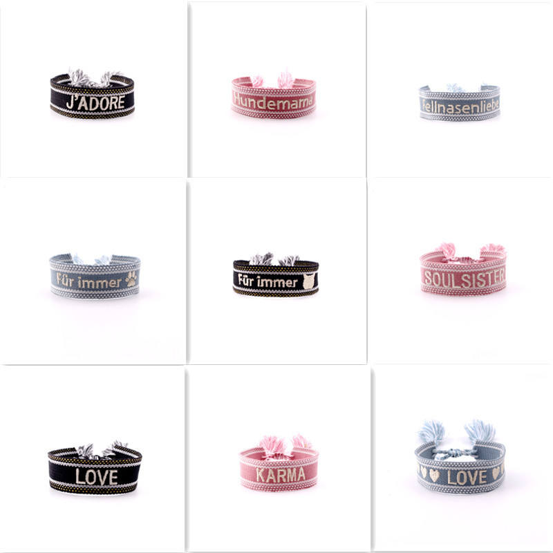 Pulsera trenzada DIY con letras y logo personalizable.